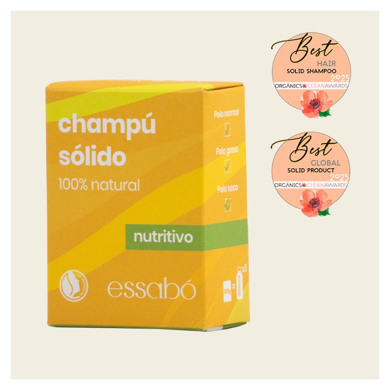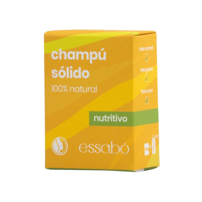 Essabó Champú Nutritivo es un champú sólido 100% natural ideal para cabellos secos. Su fórmula, enriquecida con aceite de aguacate, aceite de argán y aceite de oliva sacará lo mejor de tu melena.