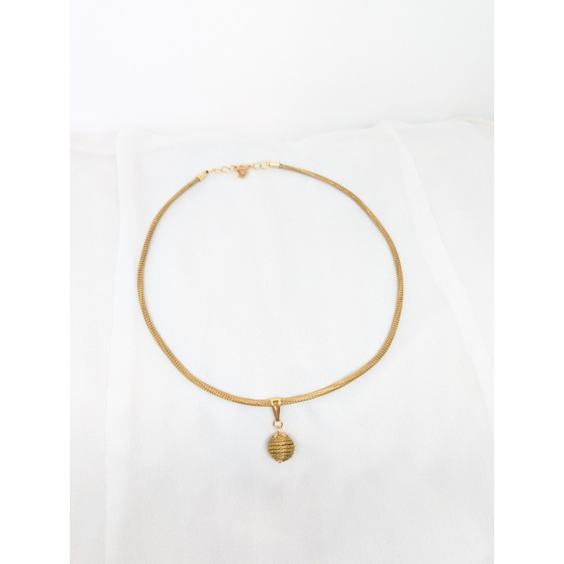 Este collar NILO con colgante de oro vegetal NEW YORK, hechos a mano con capim dourado, completarán cualquier look, desde el más elegante hasta el más casual. Una luminosa esfera fabricada en oro vegetal ofreciendo infinitas posibilidades de combinación de prendas. Su diseño evoca a una ciudad global , Nueva York, con una influencia artística de las más fuertes.
