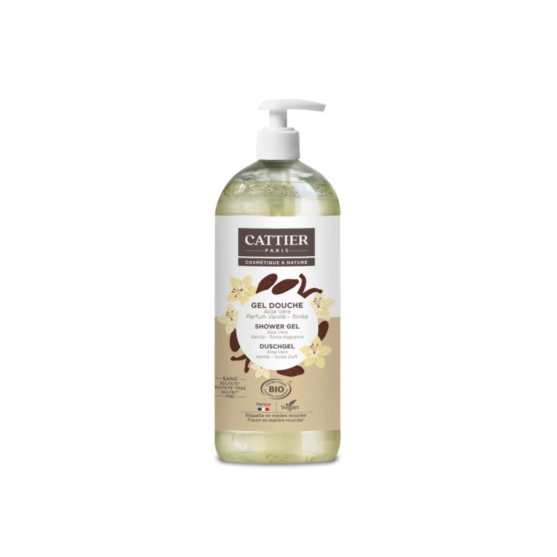 El Gel de Ducha Orgánico Vainilla Tonka de Cattier está diseñado para limpiar la piel con suavidad y respetar su equilibrio natural. Su fórmula sin sulfatos ni jabón, enriquecida con aloe vera orgánico, aporta confort, elasticidad y protección, convirtiendo la ducha en un verdadero ritual de bienestar. Su fragancia exótica y delicada mezcla la dulzura de la vainilla con las notas envolventes de la haba tonka.