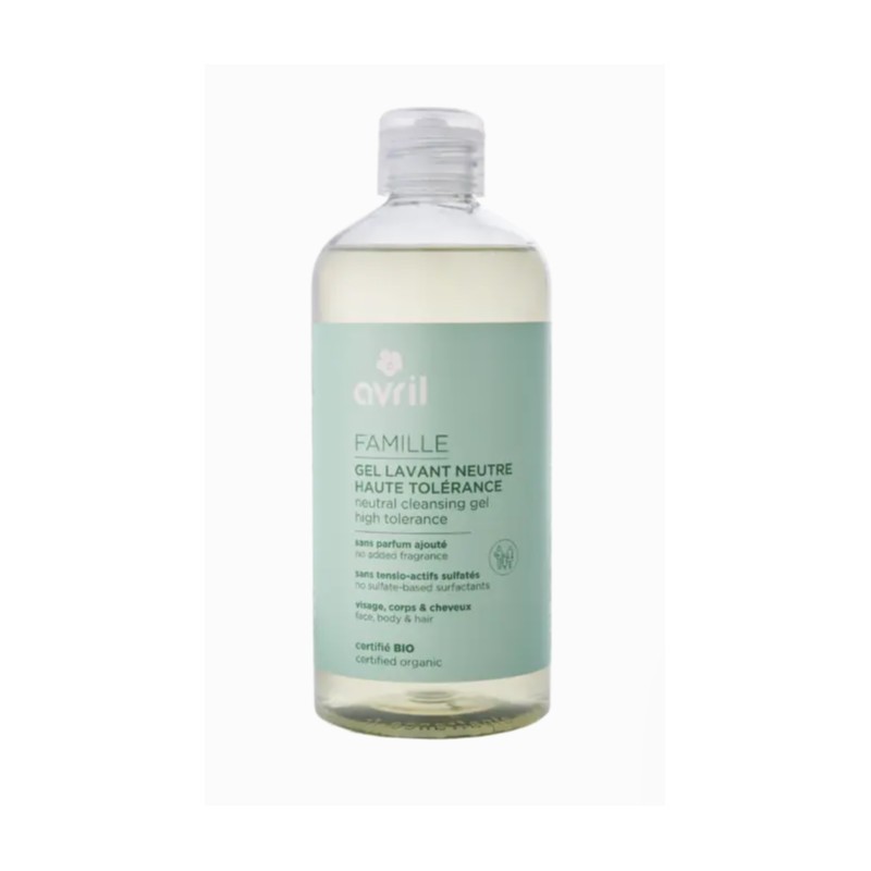 Ofrece a tu piel y a tu cabello un cuidado limpiador extremadamente suave con el gel limpiador neutro de alta tolerancia certificado ecológico Avril. Formulado sin jabón, respeta el equilibrio natural de la epidermis a la vez que limpia eficazmente.Testado bajo control dermatológico y oftalmológico, es apto para todo tipo de pieles, incluso las más sensibles, y puede utilizarse desde el nacimiento (excepto en bebés prematuros), incluso por mujeres embarazadas o en periodo de lactancia. Este gel limpiador 3 en 1 se puede utilizar tanto en el rostro como en el cuerpo o el cabello.