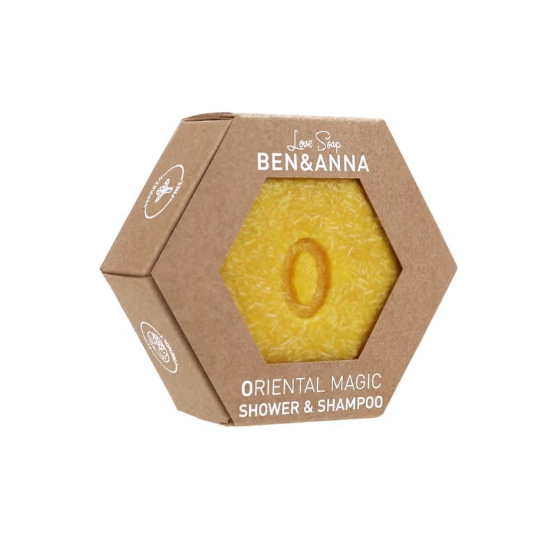 Los champús y geles ecológicos de la serie "LOVE" de Ben & Anna son una "sólida alternativa" para la ducha y el cuidado del cabello. Con su agradable perfume, abundante espuma y sus ingredientes de calidad, cuidan perfectamente de la piel y/o del cabello. Son muy económicos y fáciles de usar y - como siempre en Ben&Anna - "zero waste" gracias a un packaging simple de cartón reciclado."O" de Oriental Magic, para los mínimalistas que quieren reunir el champú y gel de ducha en un solo producto, pero sin hacer compromisos con la calidad del champú. Al contrario de muchos productos combinados , el champú gel de Ben&Anna deja el cabello suave y fácil de peinar.