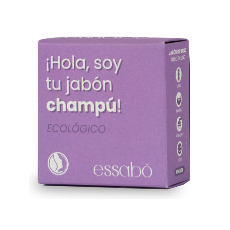 Essabó Champú es un jabón ecológico específico para el lavado del cabello, enriquecido con aceite de jojoba, argán y aloe vera ecológicos, acondicionadores naturales del cabello. Su base está elaborada con aceite de coco de agricultura sostenible de Filipinas.