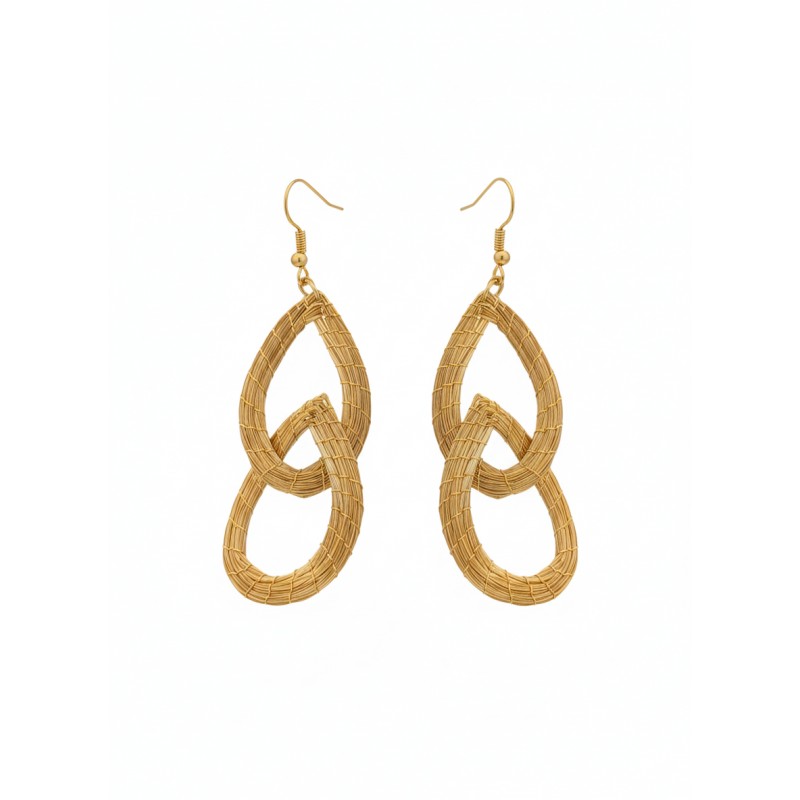 Son pendientes dorados de capim dorado, el oro vegetal brasileño. Joyería natural hecha 100% a mano con la famosa hierba dorada (Brasil).