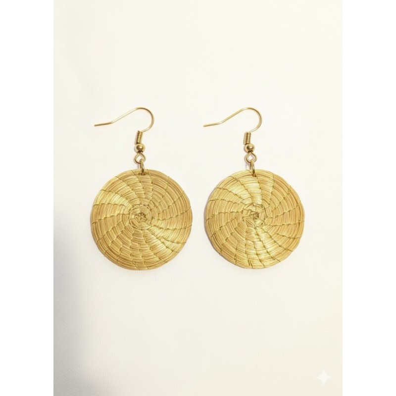 Son pendientes dorados de capim dorado, el oro vegetal brasileño. Joyería natural hecha 100% a mano con la famosa hierba dorada (Brasil).