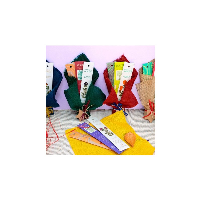 Chaque bouquet inclut un porte-encens en forme de feuille, disponible en plusieurs couleurs.