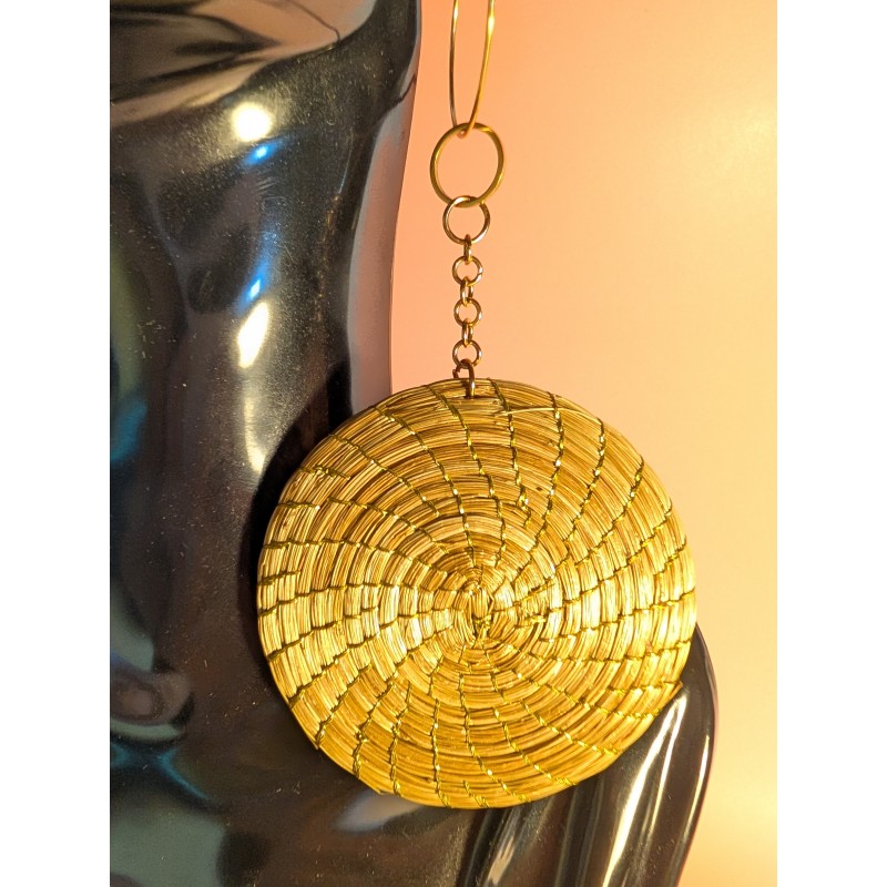 Ce sont des pendentifs dorés en capim dourado, l’or végétal brésilien.