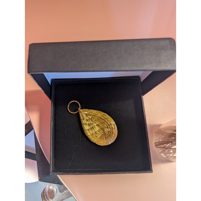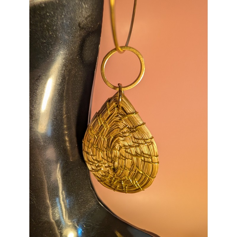 Ce sont des pendentifs dorés en capim dourado, l’or végétal brésilien.
