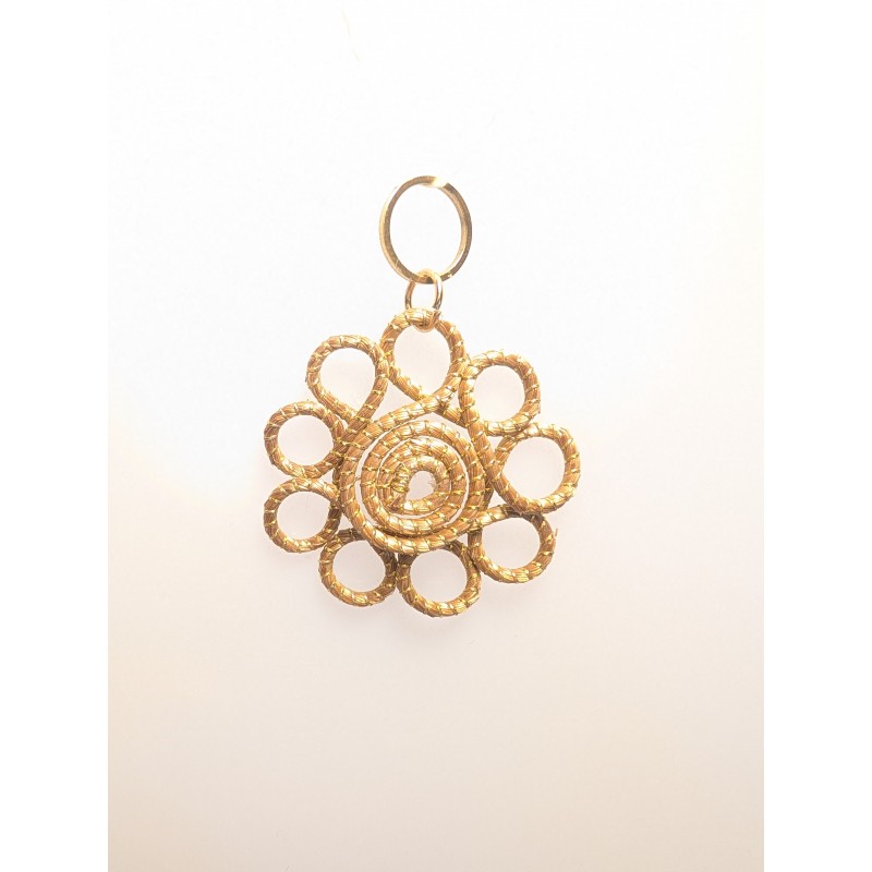 Ce sont des pendentifs dorés en capim dourado, l’or végétal brésilien.