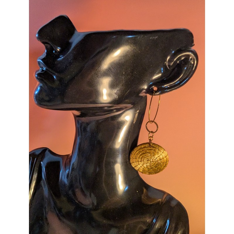 Ce sont des pendentifs dorés en capim dourado, l’or végétal brésilien.