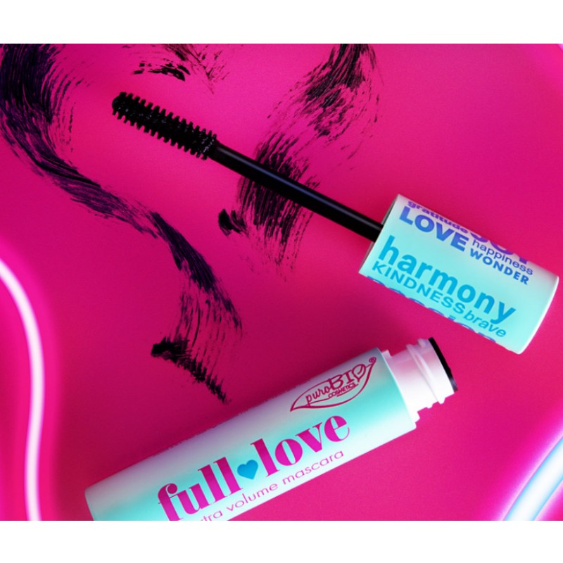 Offrez de l'amour à vos cils avec Full Love, le nouveau mascara volumateur bio, vegan et longue durée de puroBIO.